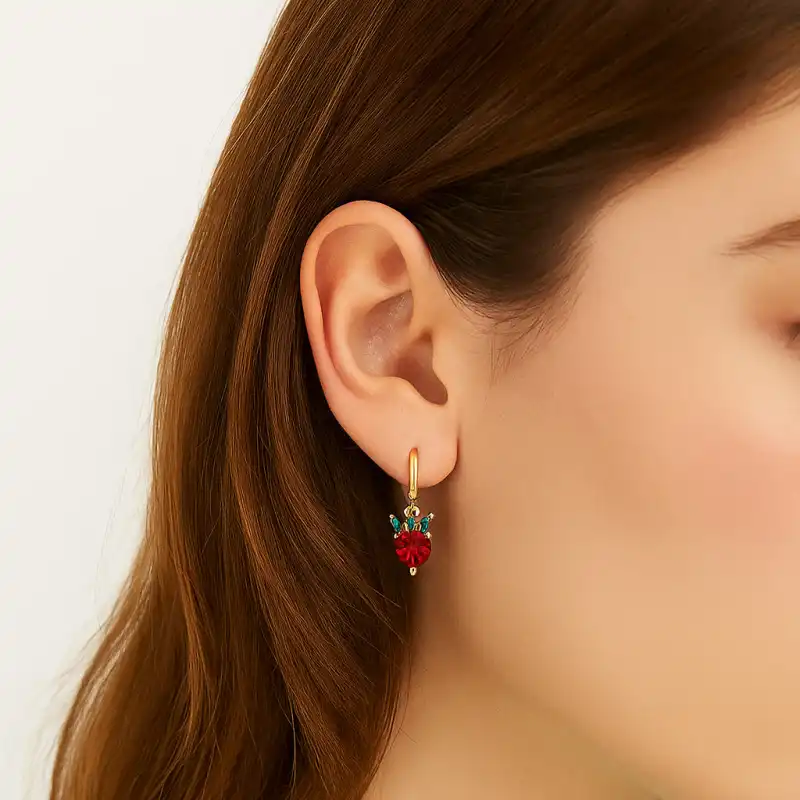 Me obsesionan estos pendientes. Tienen ese punto divertido y elegante a la vez. El rojo corazón brilla un montón y el dorado no se ha estropeado nada.