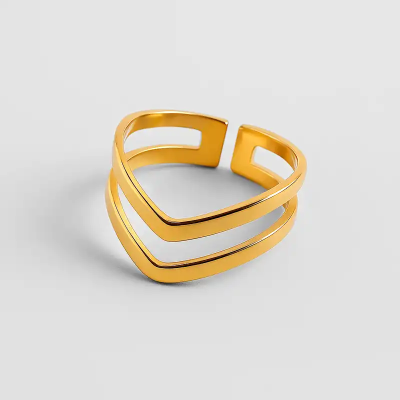 Anillo Elements realizado con acero inoxidable y baño de oro de 18k, con minerales pulidos de jade verde, agua marina y ámbar. Tamaño ajustable a la medida deseada