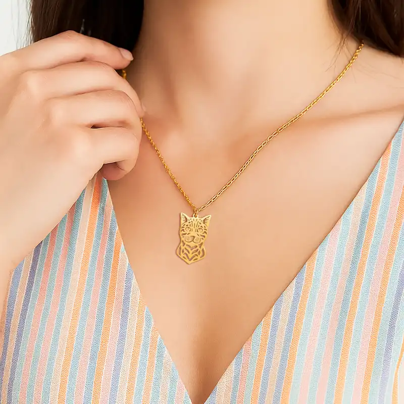 Cadena Estela realizada en acero inoxidable, con baño de oro de 18k. Largo total de 45 cm ajustable a la medida deseada. Cadena de 33mm de ancho. Colgante de 2x1,5cm.
