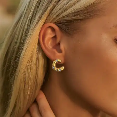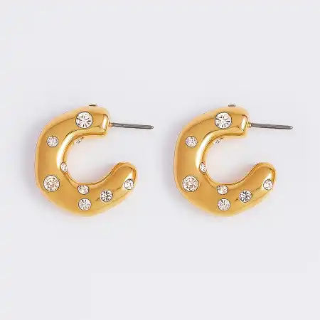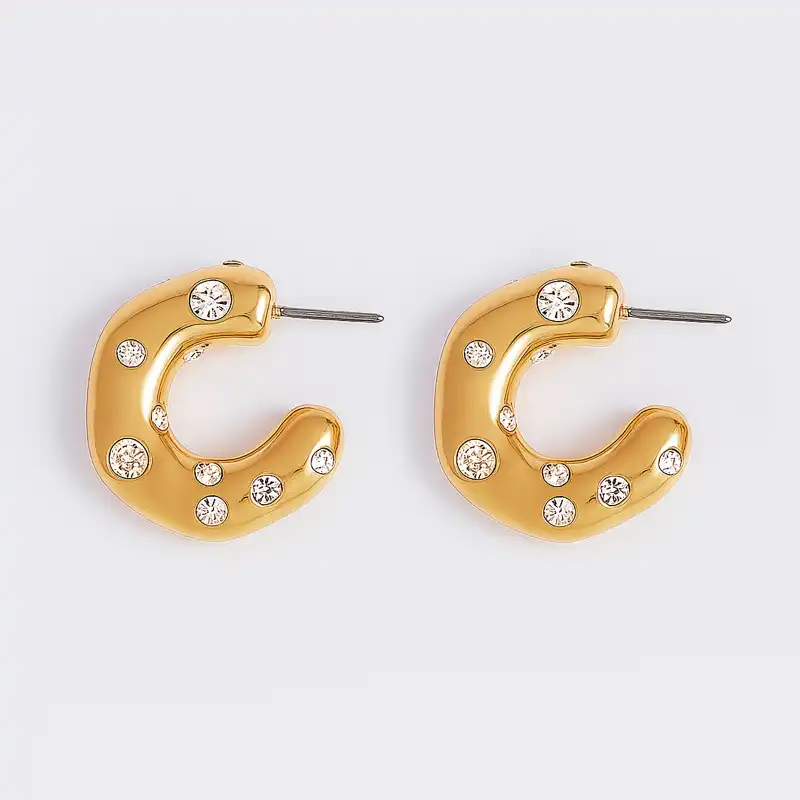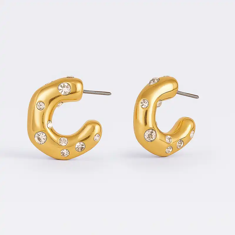 Pendientes Candi realizados en acero inoxidable con baño de 18k, zirconias blancas engarzadas y cierre a presión
