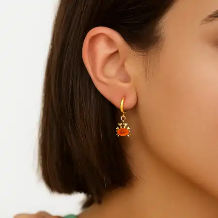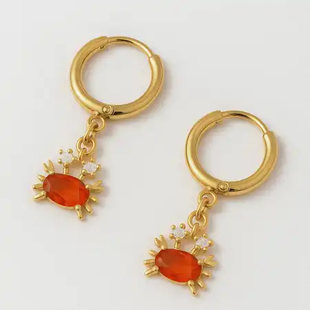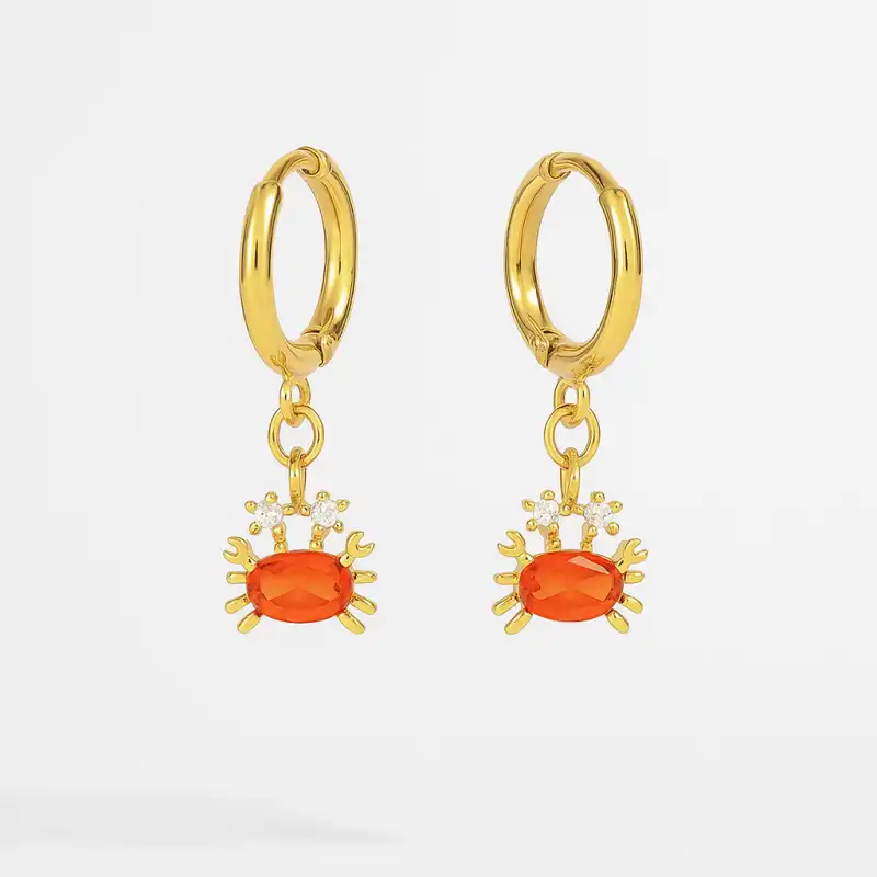 Pendientes Cangrejo realizados en acero inoxidable con baño de oro de 18k y con zirconias naranjas y blancas engarzadas