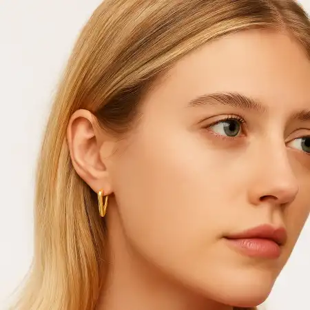 Pendientes de serpiente realizados en acero inoxidable y con baño de oro de 18k. Largo total del collar 44 cm ajustable a la medida deseada. Tamaño de los pendientes 1x1 cm con cierre de presión