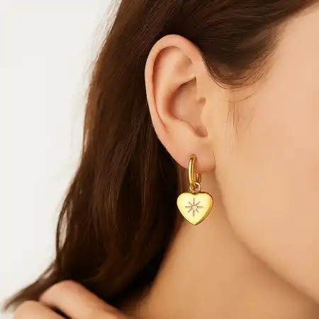 Pendientes Estrella con Piedra Granate realizados en acero inoxidable, con baño de oro de 18k y piedra natural. Tamaño 2,3x0,5 cm y cierre de tuerca de presión