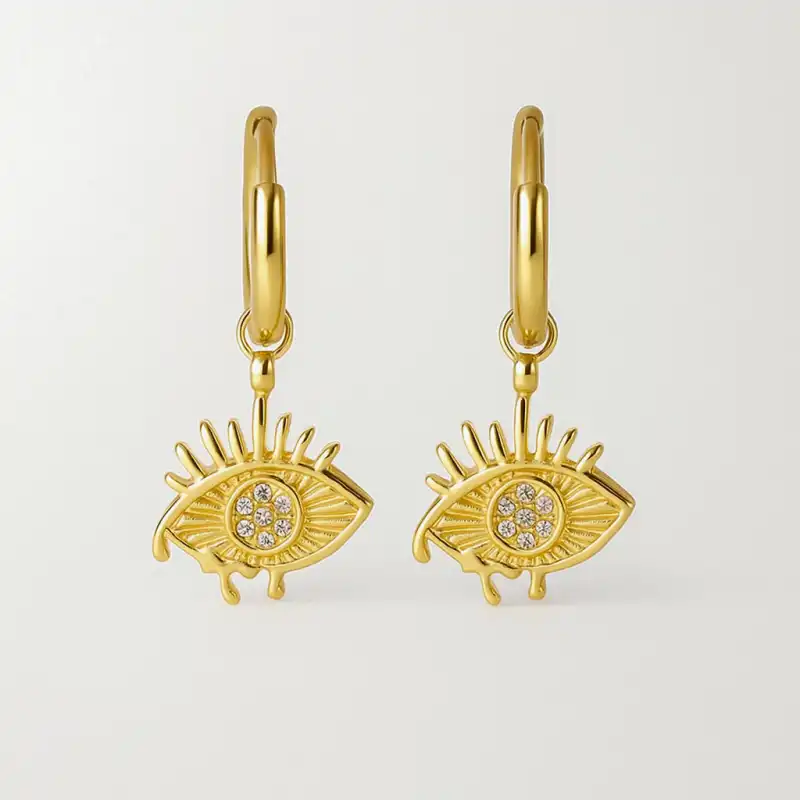 Pendientes Cangrejo realizados en acero inoxidable con baño de oro de 18k y con zirconias naranjas y blancas engarzadas