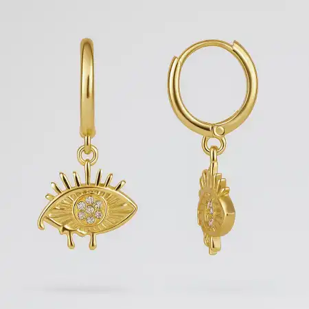 Pendientes Nusa realizados en acero inoxidable y con baño de oro de 18k. Cierre de tuerca a presión. Tamaño de 1,5x1,5 cm.