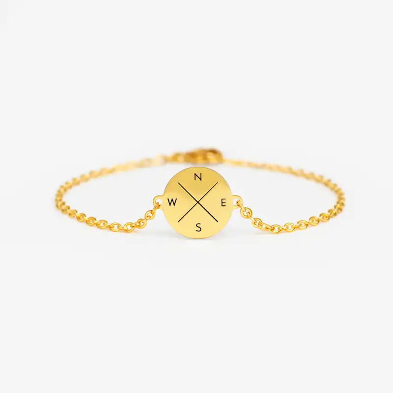 Pulsera Fátima realizada en acero inoxidable y con baño de oro de 18k. Largo total de 20 cm ajustable a la medida deseada. Colgante de 2,5x2 cm.